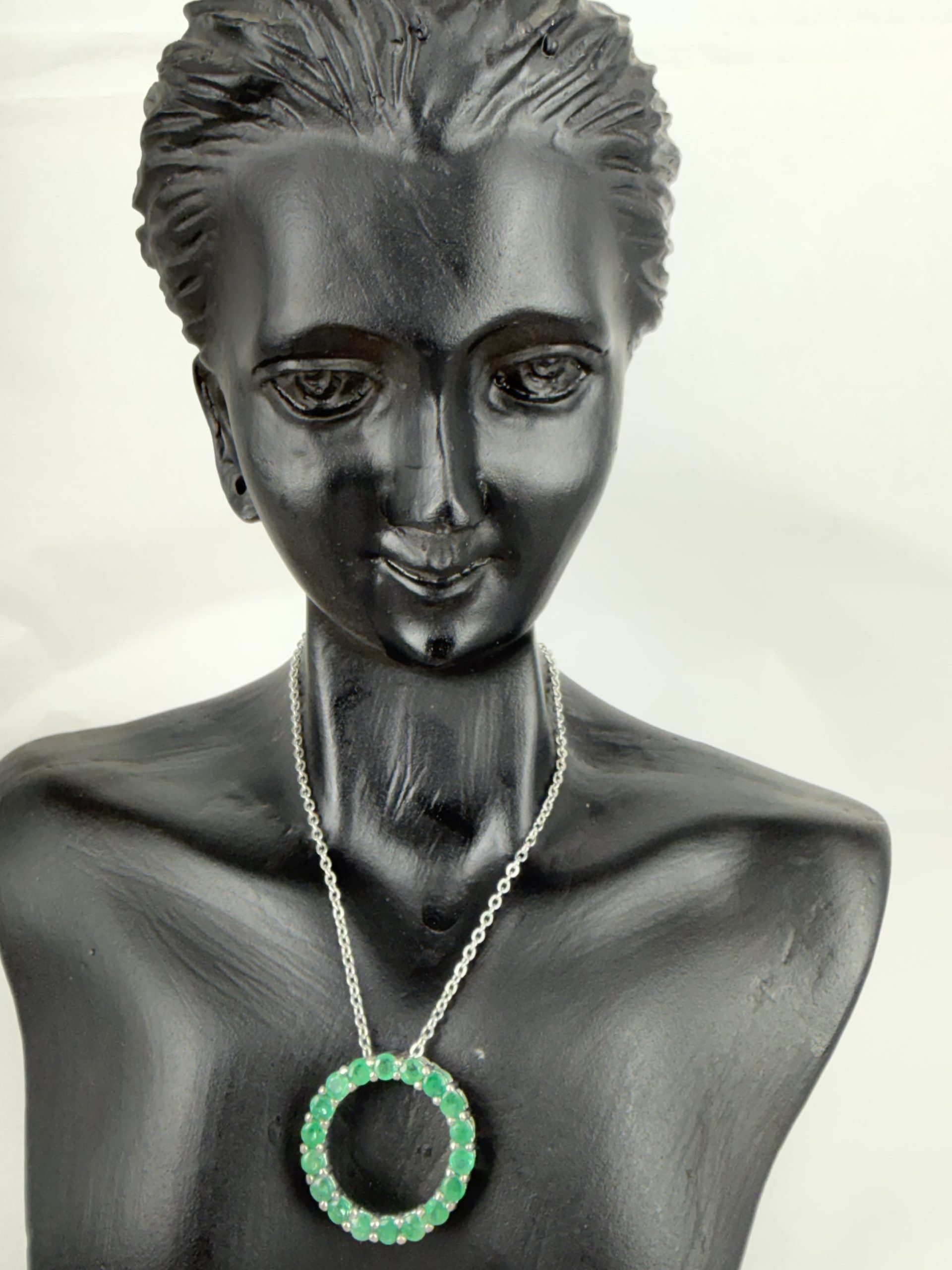 Elegant and vibrant, the Circle of Life Emerald Necklace features 18 natural emerald gemstones set in polished silver, forming a radiant green halo. The timeless circular design symbolises renewal, unity and the continuous flow of life, while the rich green colour adds a refined and luxurious touch.