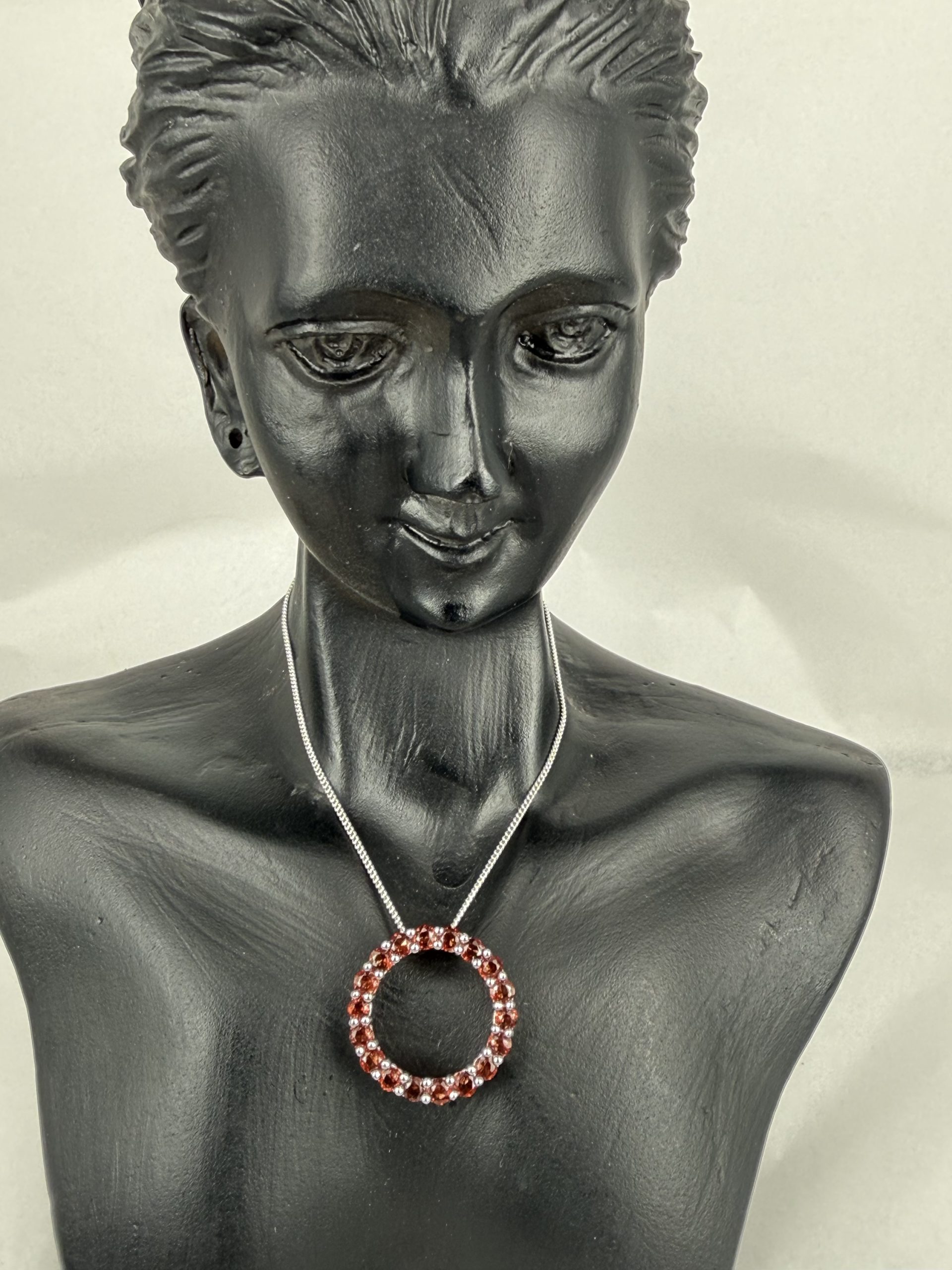 Elegant and meaningful, the Circle of Life Garnet Necklace showcases 18 natural garnet gemstones set in polished silver, forming a radiant circular halo. The timeless circle symbolises eternity, unity and life’s continuous journey, while the deep red garnet brings warmth, strength and passion to the design.